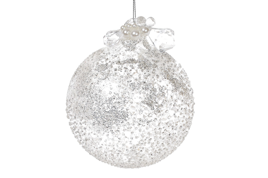 Ялинкова куля 10см з декором з бусин, колір - прозоре скло з покриттям "лід"