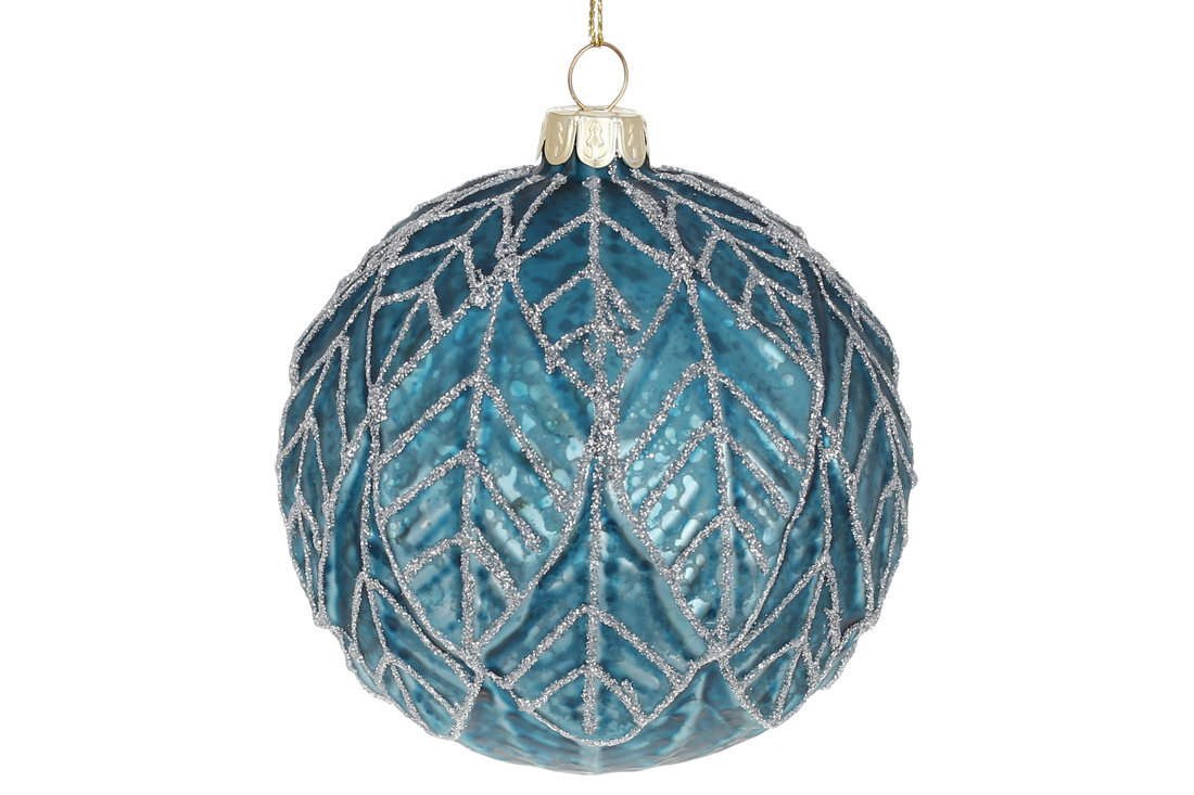 Ялинкова куля 10см з рельєфним малюнком Листя, колір - темно-бірюзовий