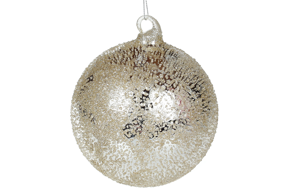 Ялинкова куля 12см із дзеркальною поверхнею та покриттям "лід", колір - шампань