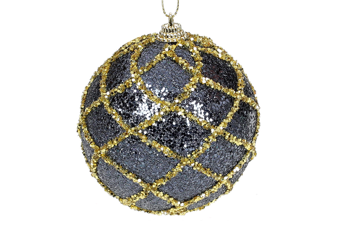 Ялинкова куля 8см з золотим орнаментом, колір - синій із золотом.