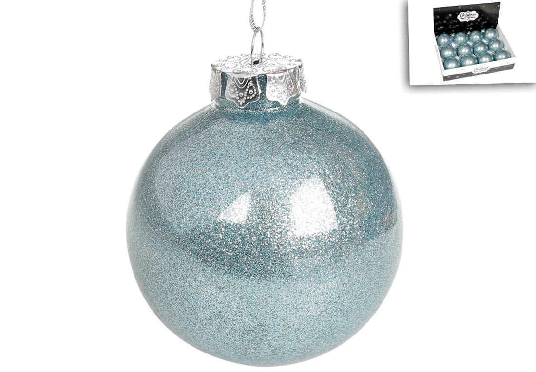 Ялинкова куля 8см, колір - блакитний з гліттером усередині