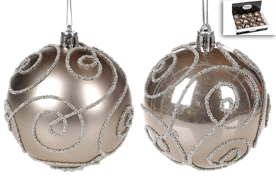 Ялинкова куля 8см, колір - холодний беж з візерунком, 2 дизайни - матовий та перламутр
