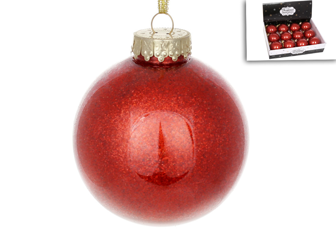 Ялинкова куля 8см, колір - червоний з гліттером всередині