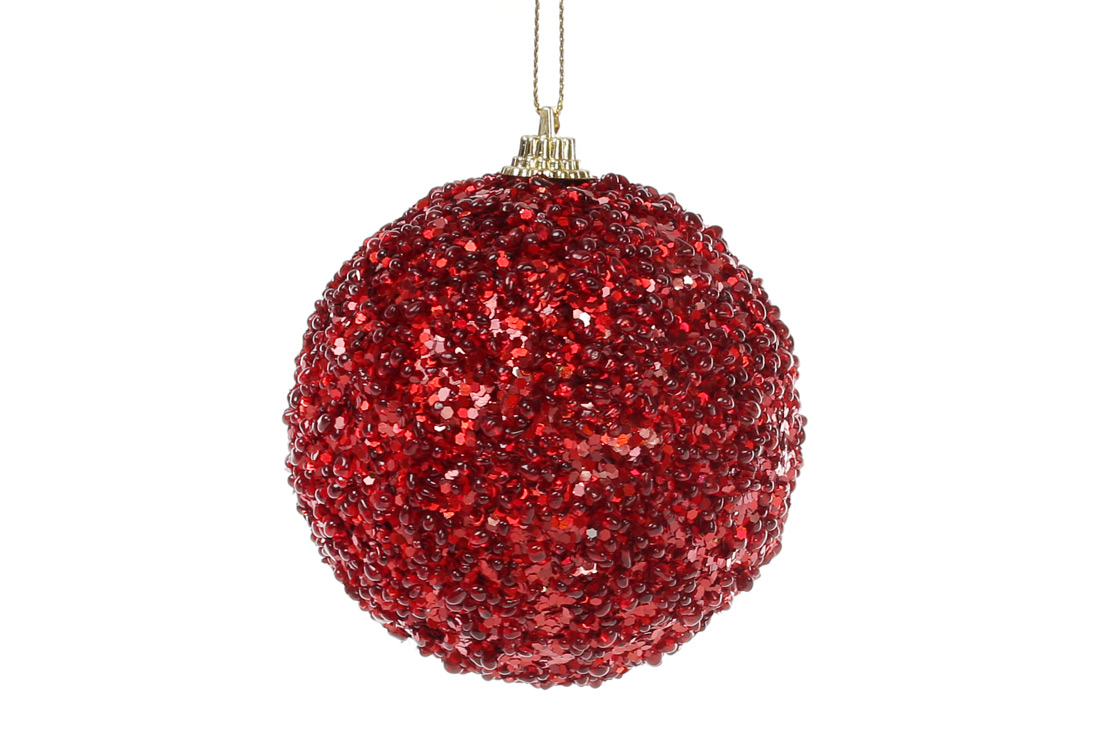 Ялинкова куля 8см, колір - червоний з покриттям лід