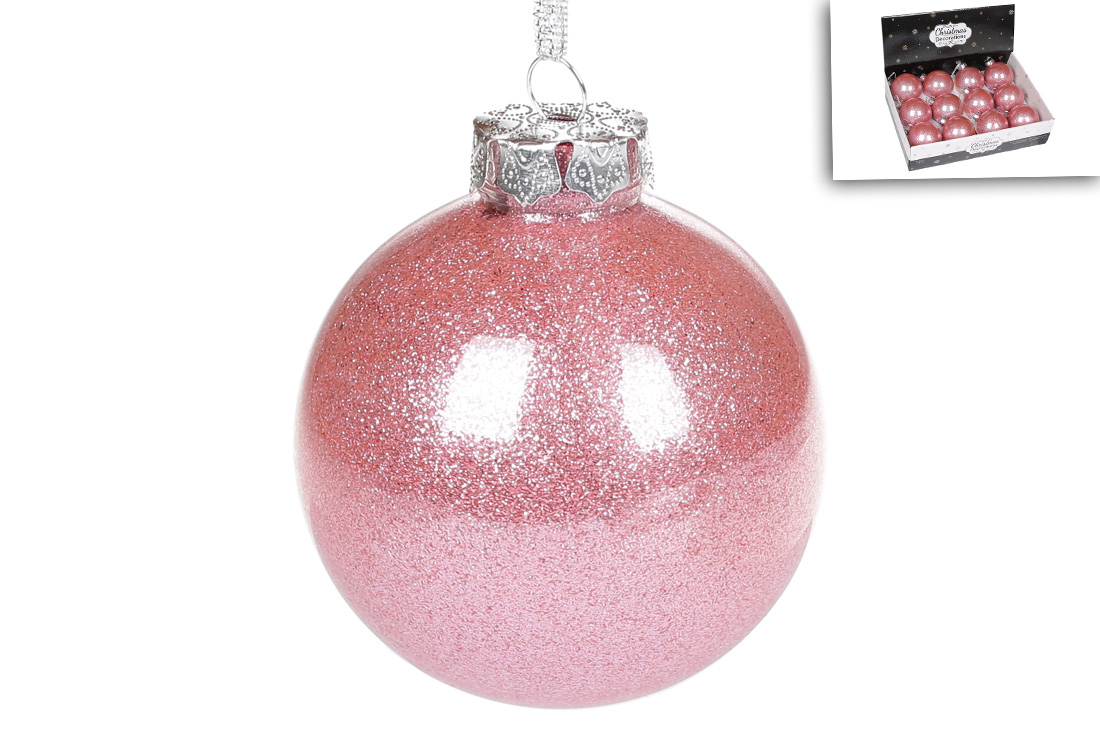 Ялинкова Куля 8см, колір - рожевий з гліттером всередині