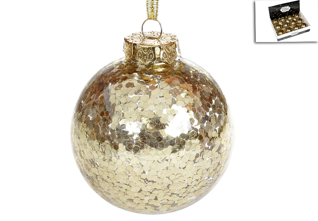 Ялинкова куля 8см, колір - золото з паєтками всередині