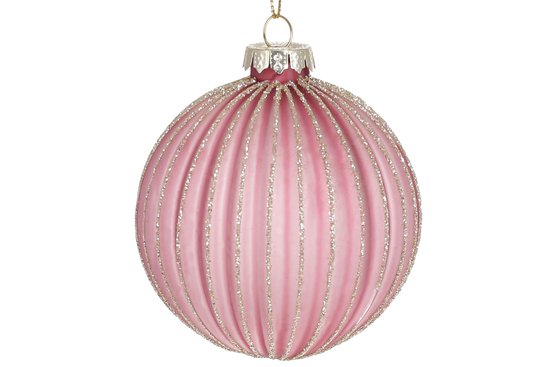 Ялинкова куля 8см матова з гліттером, колір - вечірня троянда