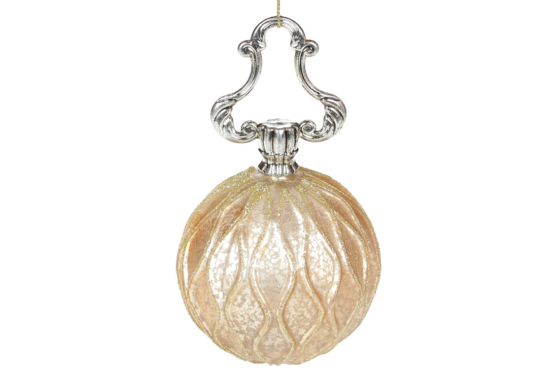 Ялинкова куля 8см на фігурному підвісі, колір - світле золото