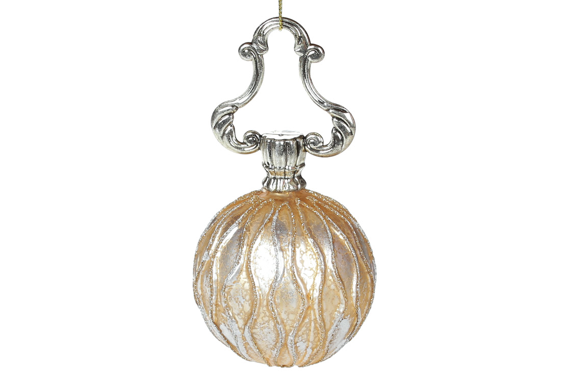 Ялинкова куля 8см на фігурному підвісі, колір - золото антик.