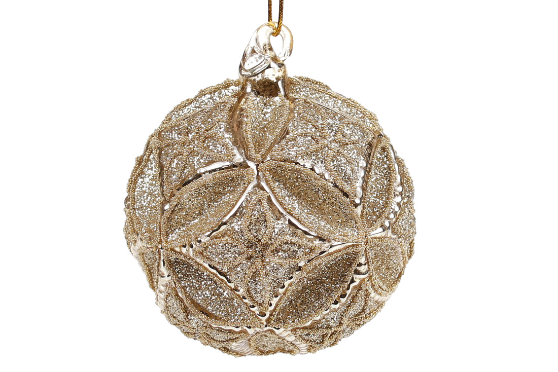 Ялинкова куля 8см рельєфної форми з декором із гліттера, колір - шампань