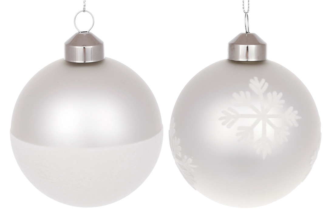 Ялинкова куля 8см з оксамитовим орнаментом, колір - матовий білий, 2 дизайни в дисплей коробці