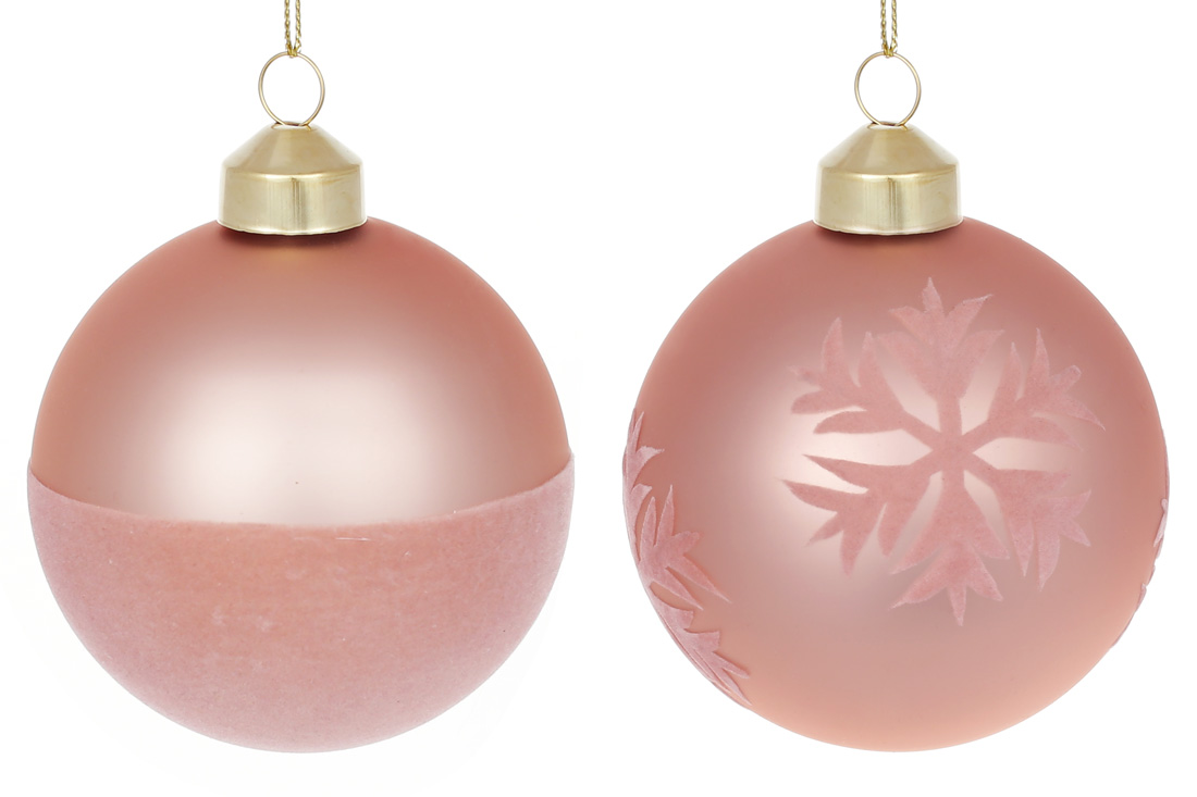 Ялинкова куля 8см з оксамитовим орнаментом, колір - матовий рожевий, 2 дизайни в дисплей коробці