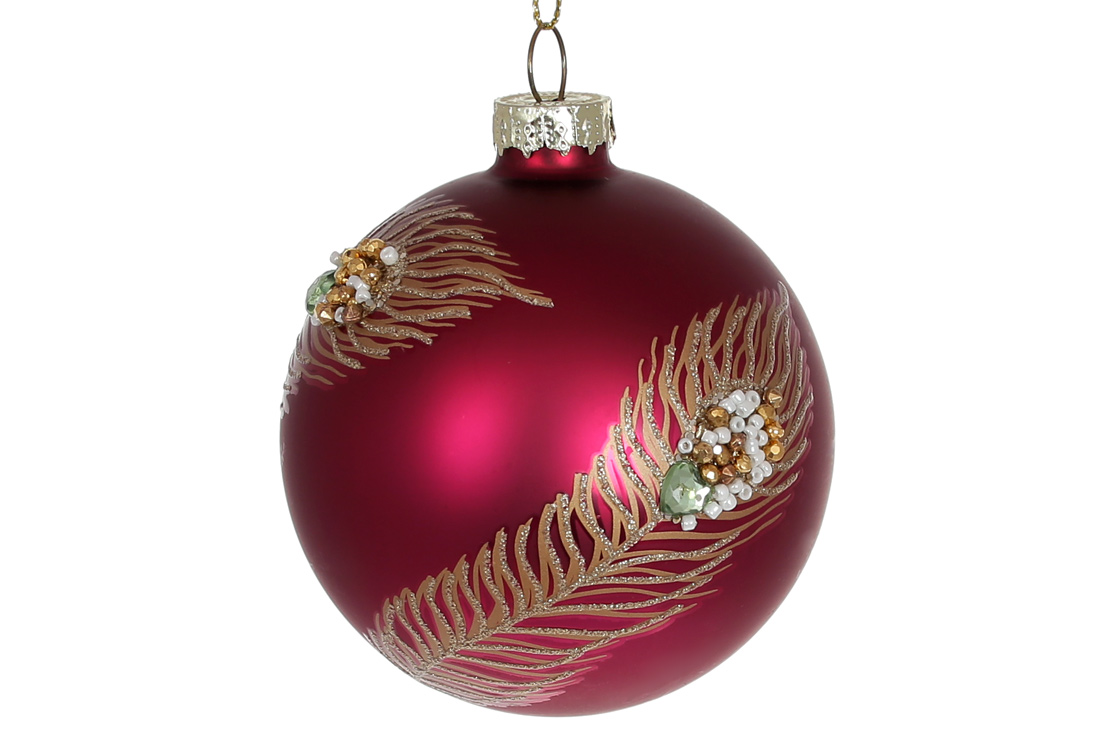 Ялинкова куля 8см з декором із гліттера та стразами, колір - бордо