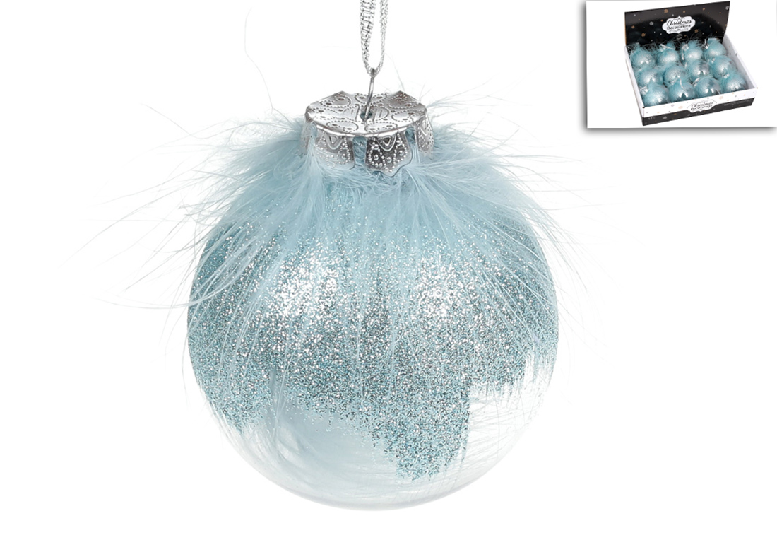 Ялинкова куля 8см з декором із пуху, колір - блакитний