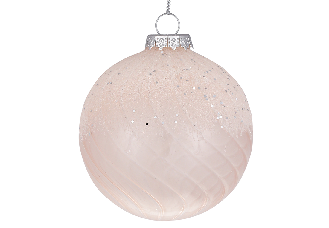 Ялинкова куля 8см з гліттером, колір - рожево-бежевий