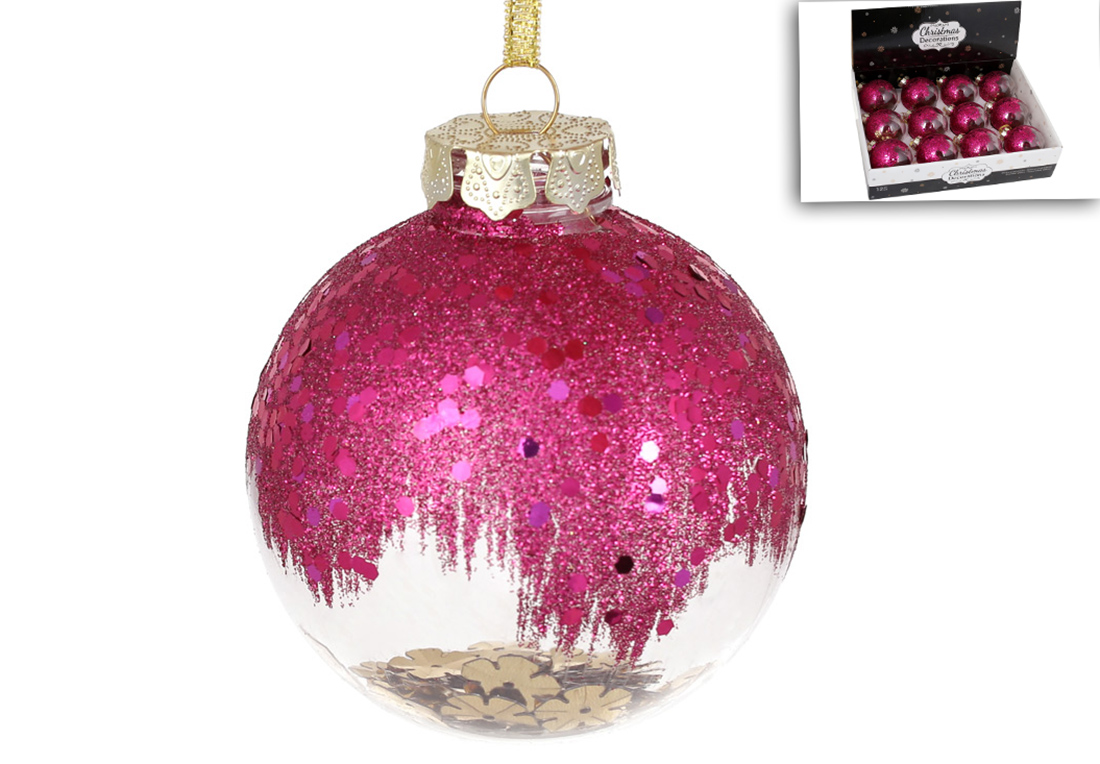 Ялинкова куля 8см з гліттером і золотим декором усередині, колір - магнолія.