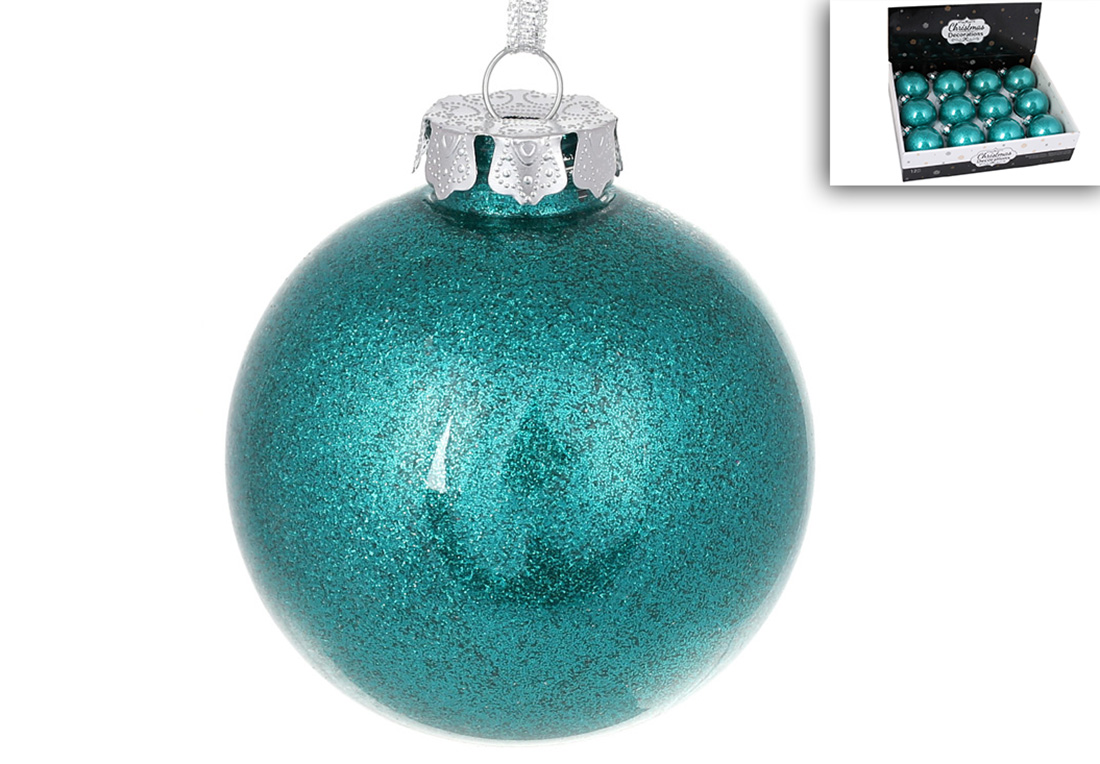Ялинкова куля 8см з гліттером усередині, колір - бірюзовий