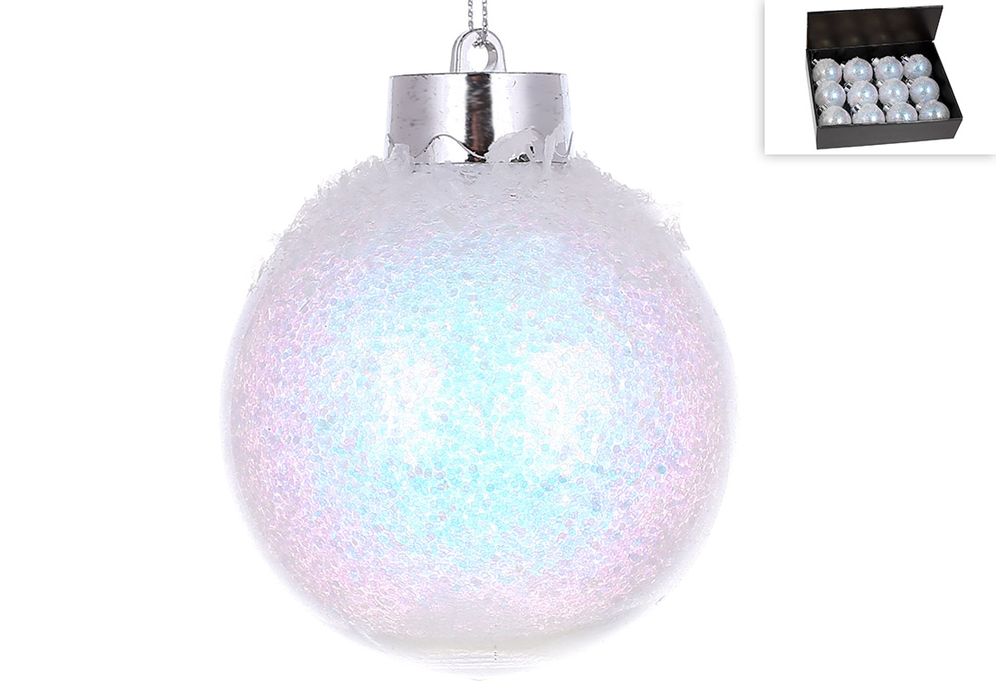 Ялинкова куля 8см з великим гліттером усередині, колір - діамантовий білий
