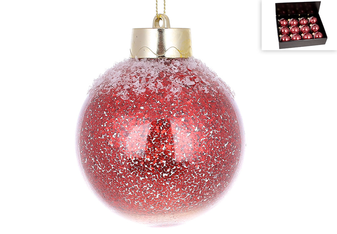 Ялинкова куля 8см з великим гліттером усередині, колір - червоний