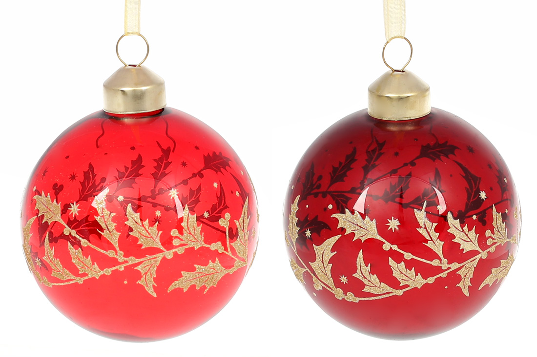Ялинкова куля 8см Золота гілка, прозоре скло, мікс 2 кольорів в дисплей коробці