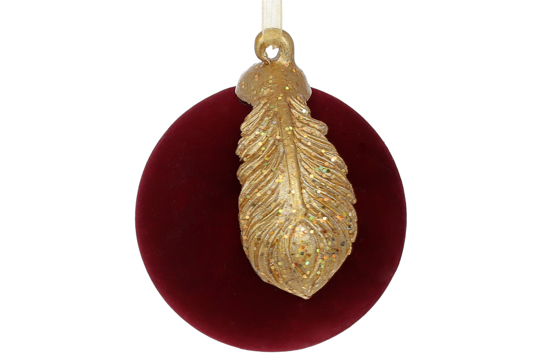 Ялинкова куля 8см Золоте Перо, колір - оксамит бордовий, в дисплей коробці