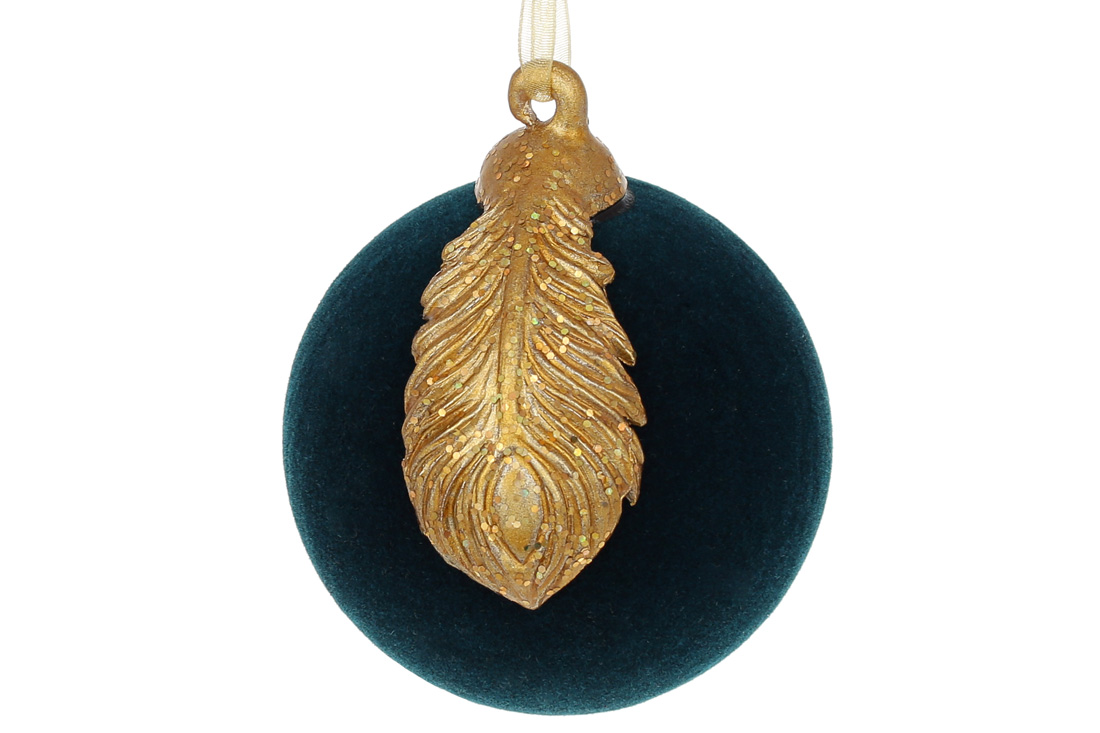 Ялинкова куля 8см Золоте Перо, колір - темно-зелений оксамит, в дисплей коробці