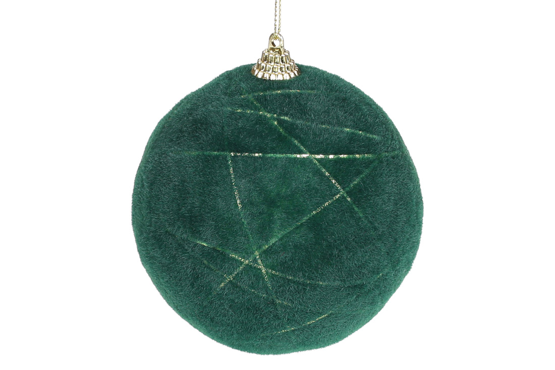 Ялинкова куля оксамитова із золотою ниткою 10см, колір - глибокий зелений
