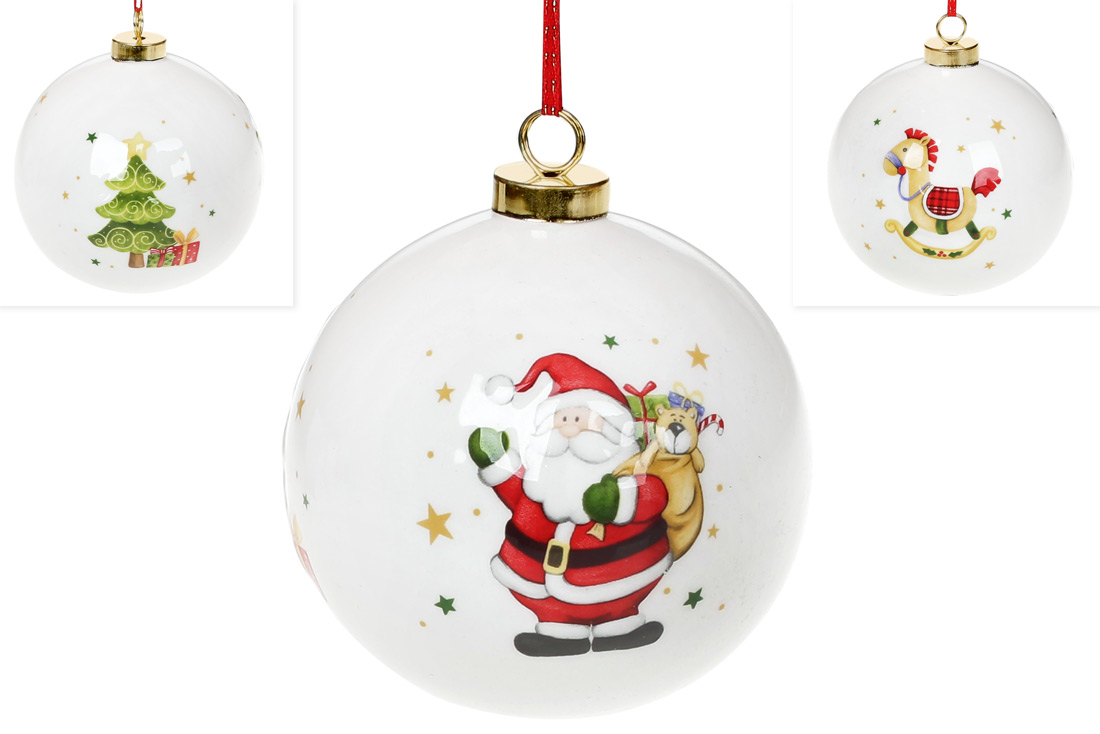 Ялинкова куля з кераміки з тристороннім малюнком, 10см, колір - білий