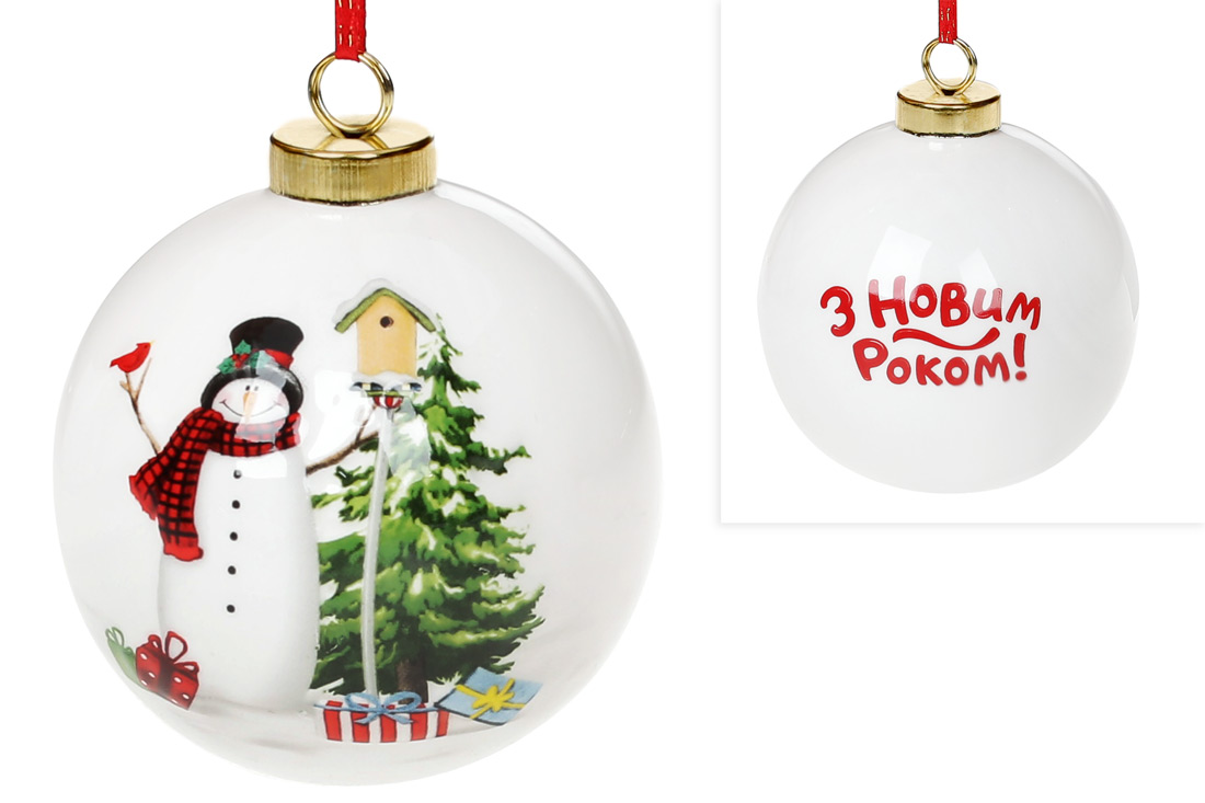 Ялинкова куля з кераміки "З Новим Роком!", 10см, колір - білий
