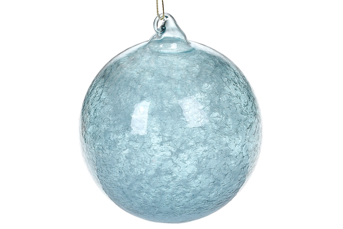 Ялинкова куля із прозорого скла з морозним ефектом усередині, 10см, колір - блакитна бірюза