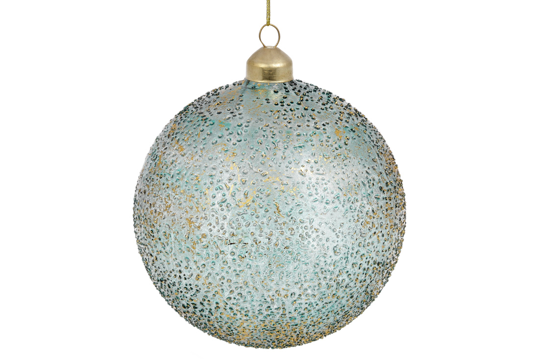 Ялинкова куля із прозорого скла з покриттям лід та золотою фольгою, 12см, колір - темна бірюза
