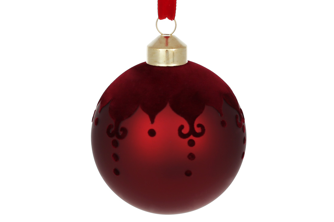Ялинкова куля Королівське бордо 8см, колір - матовий бордо з оксамитом, в дисплей коробці