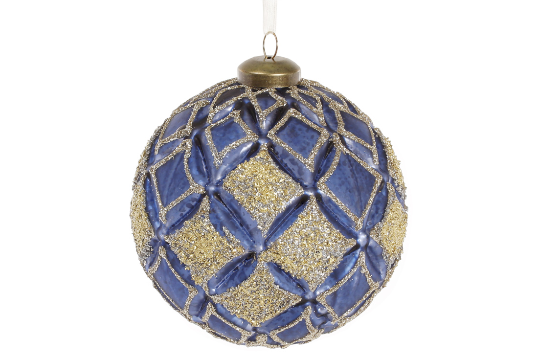 Ялинкова куля матова з декором 10см, колір - сапфір із золотом