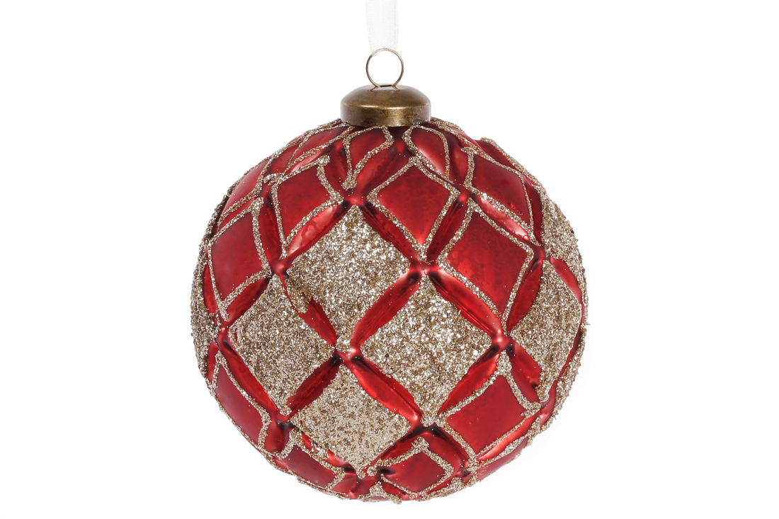 Ялинкова куля матова з декором 10см, колір - червоний гренадин