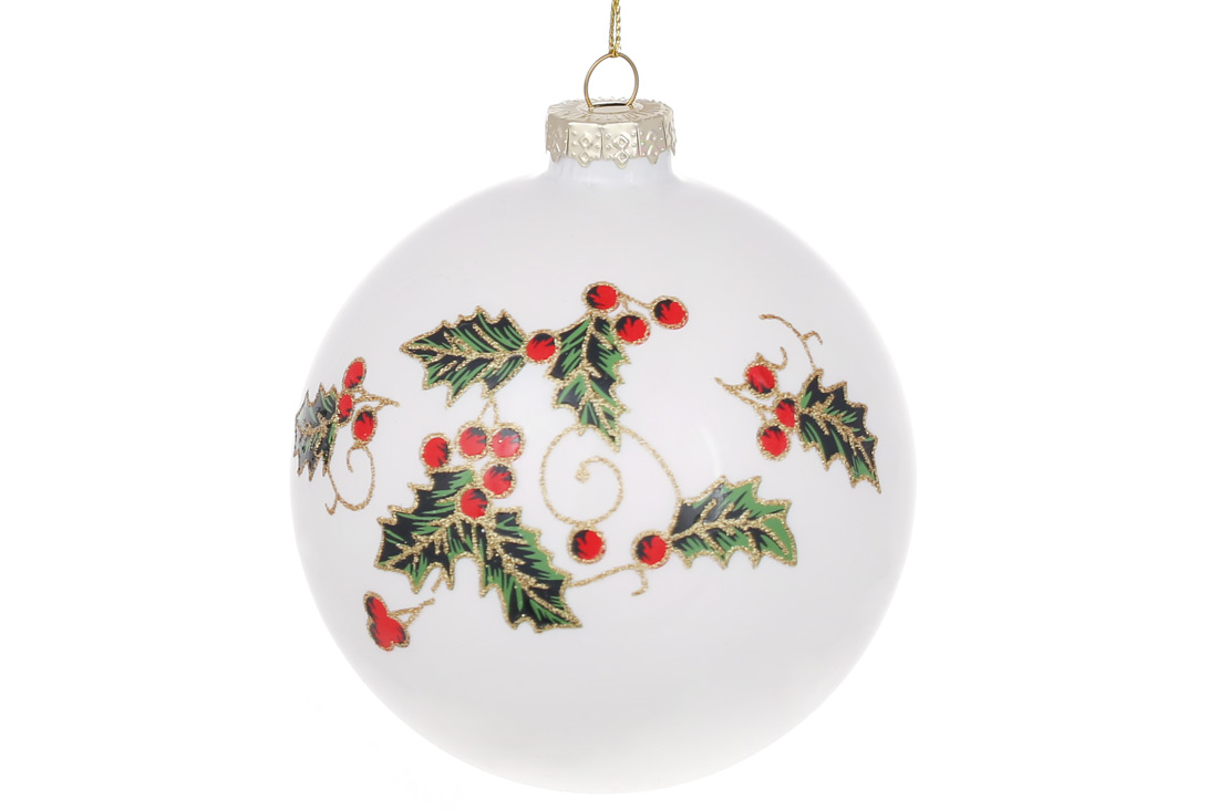 Ялинкова куля Омела 10см, колір - білий з малюнком