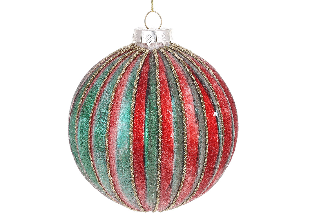 Ялинкова куля рельєфної форми 10см з цукровим покриттям, колір - зелений з червоним