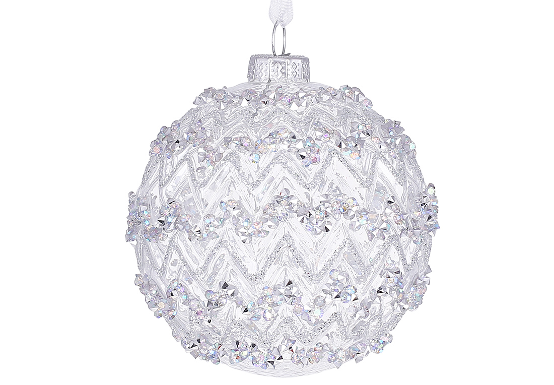 Ялинкова куля рельєфної форми з прозорого скла та декором зі страз 8см