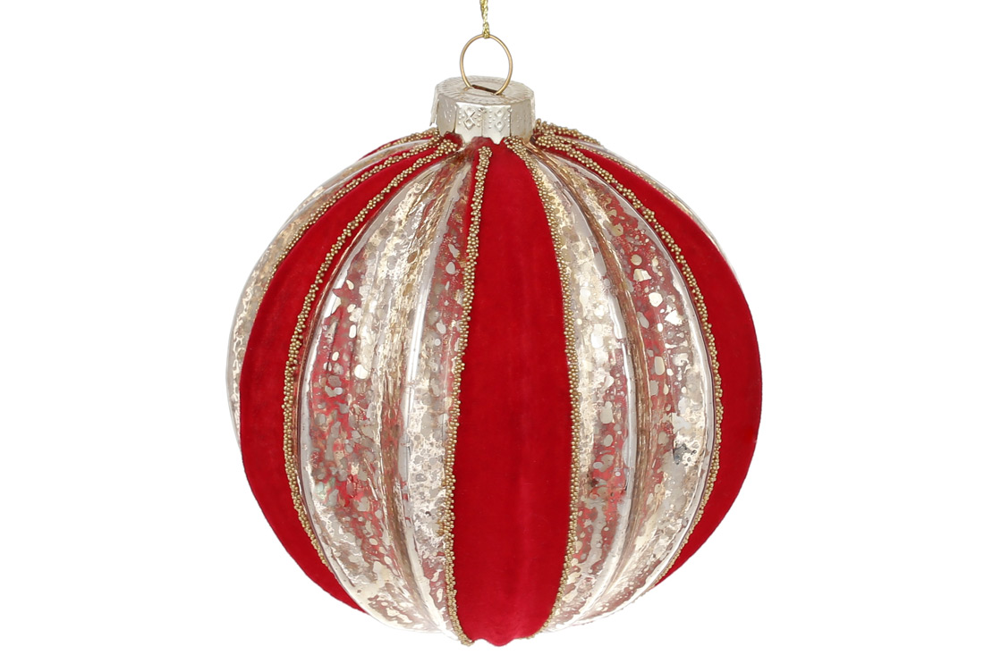 Ялинкова куля рельєфної форми "Червоний оксамит" 10см, колір - червоний з платиною