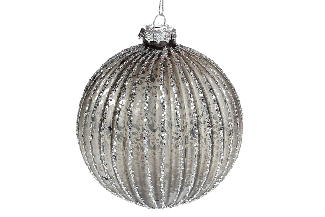 Ялинкова куля рельєфної форми з гліттером 10см, колір - графіт