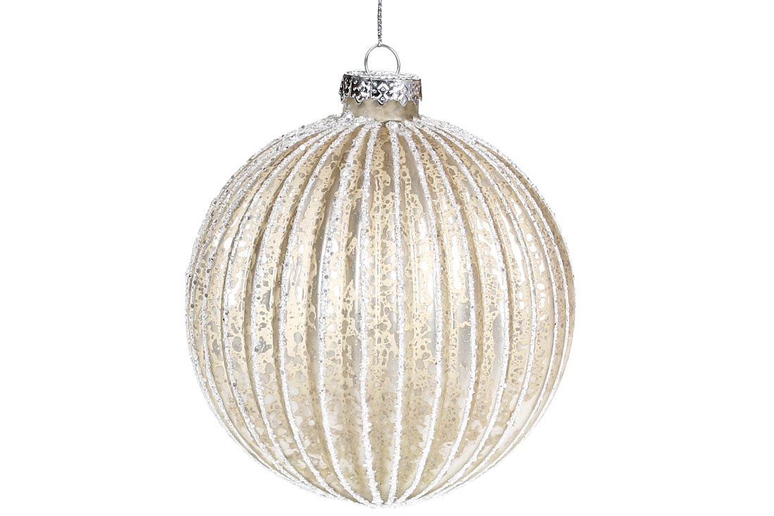 Ялинкова куля рельєфної форми з гліттером 10см, колір - світло-бежевий антик