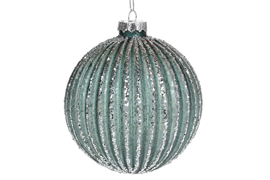 Ялинкова куля рельєфної форми з гліттером 10см, колір - темна бірюза
