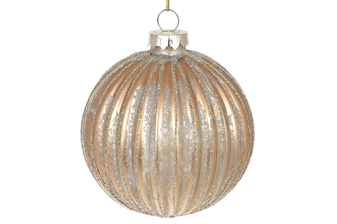 Ялинкова куля рельєфної форми з гліттером 8см, колір - старовинне золото