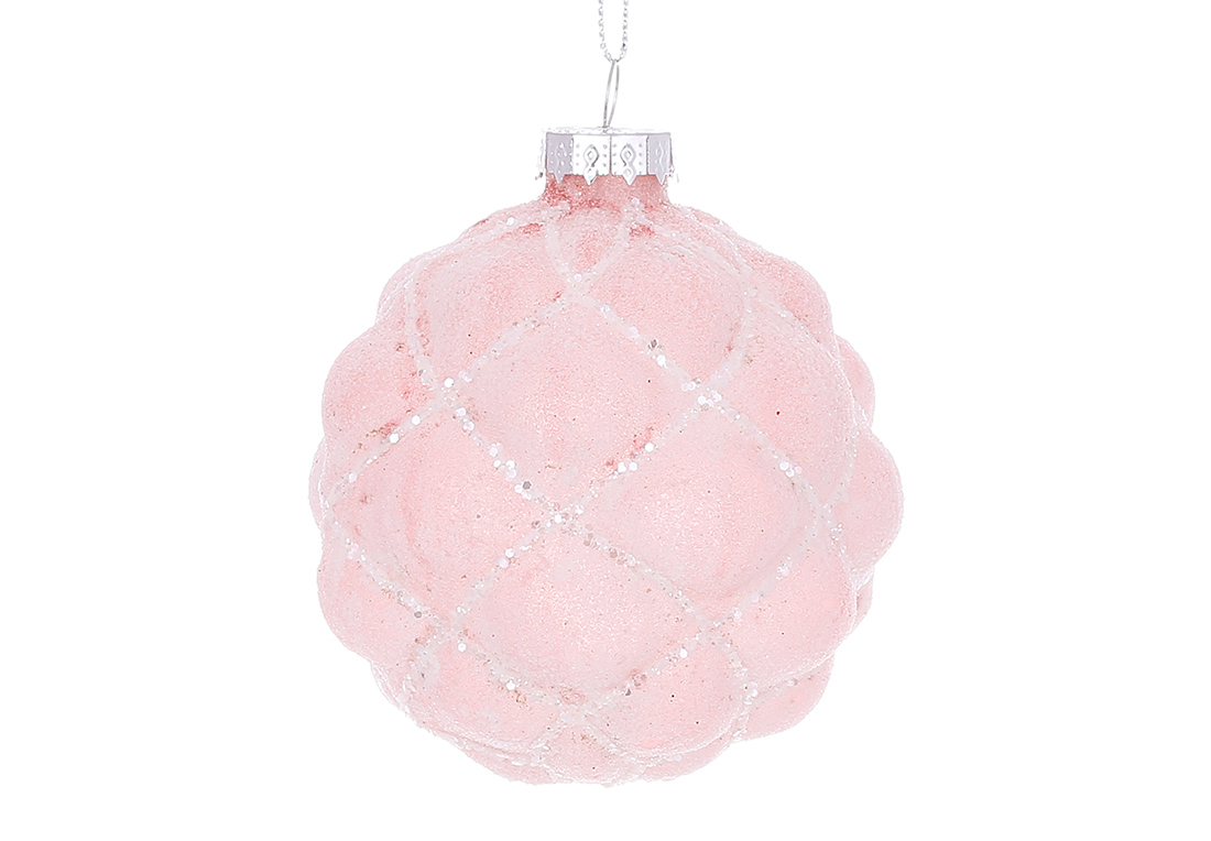 Ялинкова куля рельєфної форми з цукровим покриттям та гліттерним декором 8см, колір - блідо-рожевий