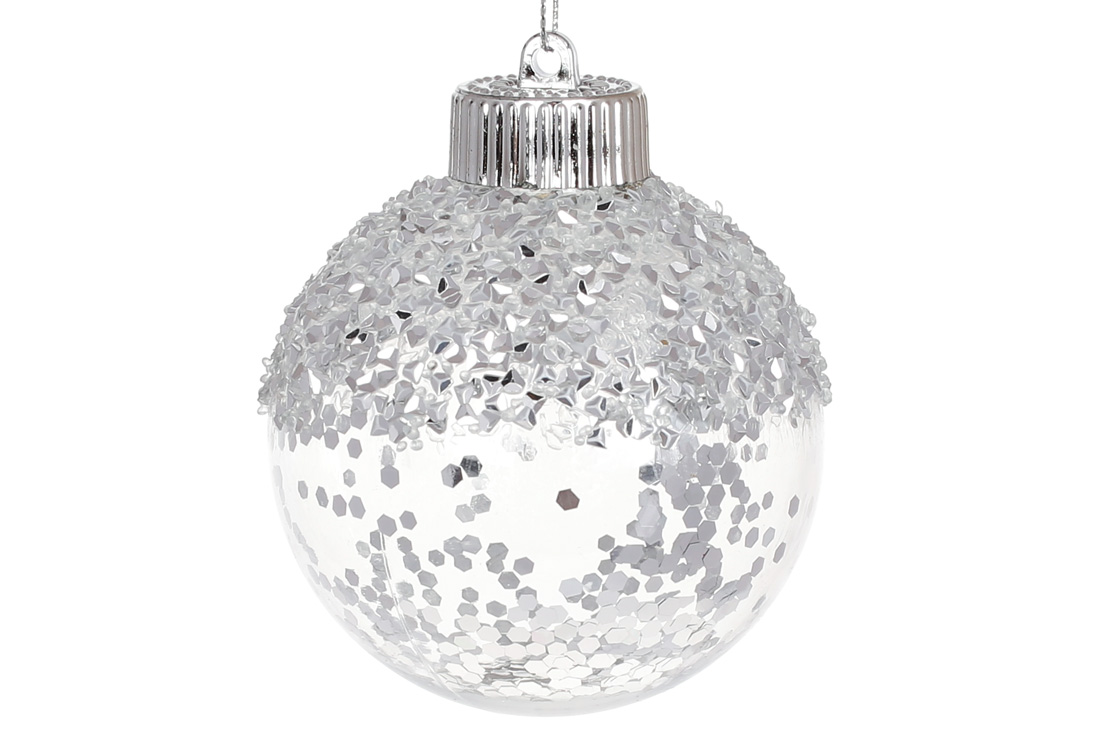 Ялинкова куля з блискітками всередині 8 см, колір - срібло
