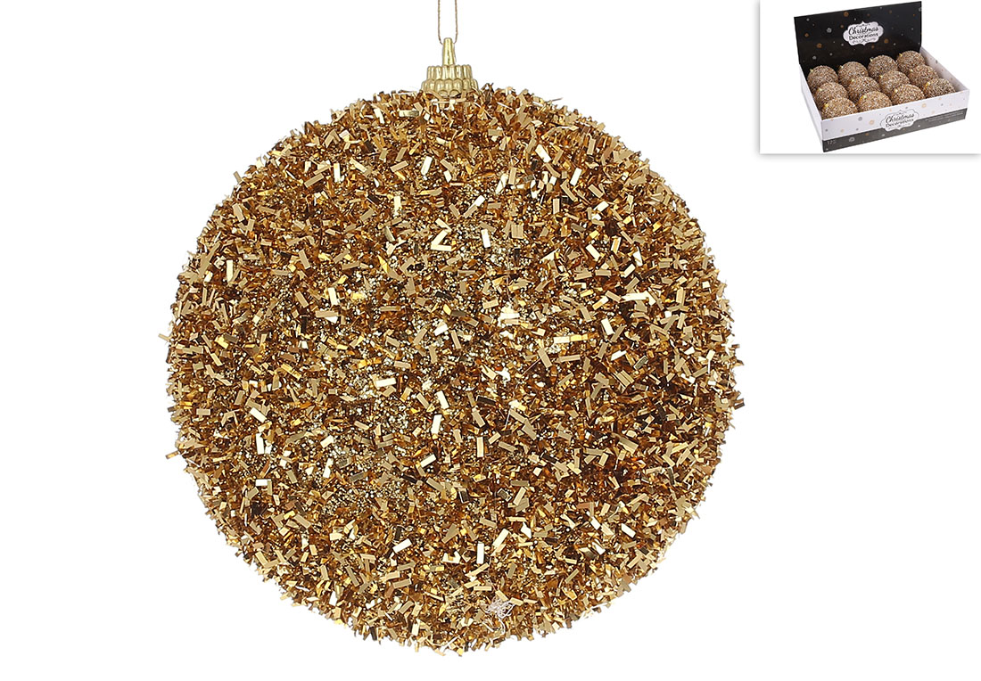 Ялинкова куля з блискучою присипкою 10см, колір - шампань