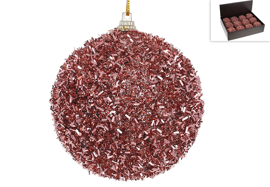 Ялинкова куля з блискучою присипкою 8см, колір - рожеве золото