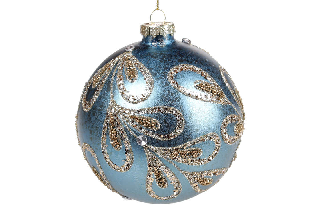 Ялинкова куля з декором 10см, колір - кобальтовий синій