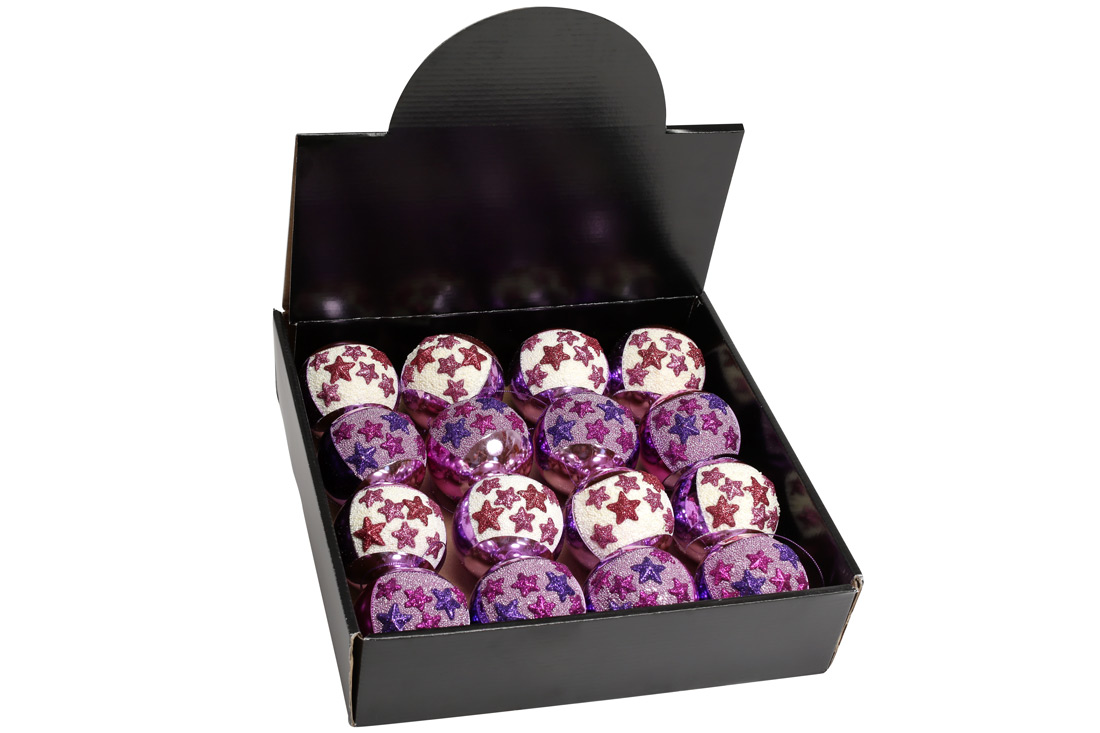 Ялинкова куля з декором 8см Бузковий зорепад, 2 дизайни в дисплей коробці