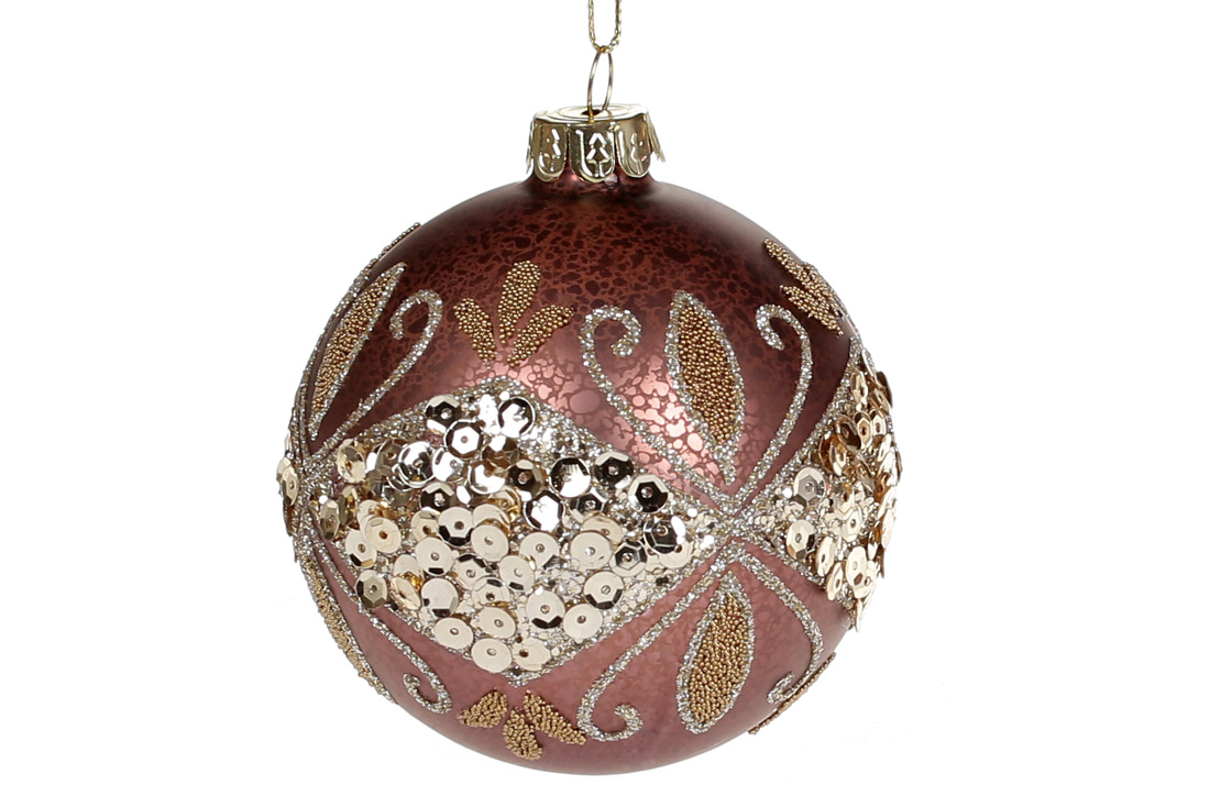 Ялинкова куля з декором з бусин і страз, 8см, колір - божоле