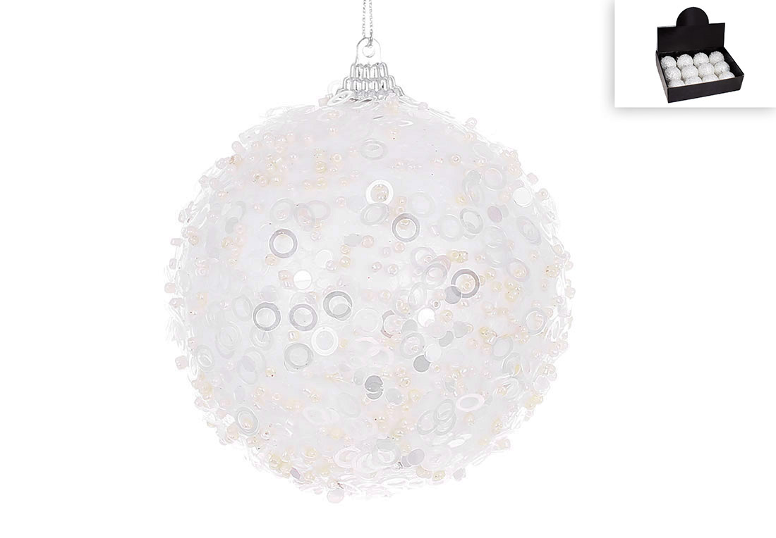 Ялинкова куля з декором із гліттера 10см, колір - білий